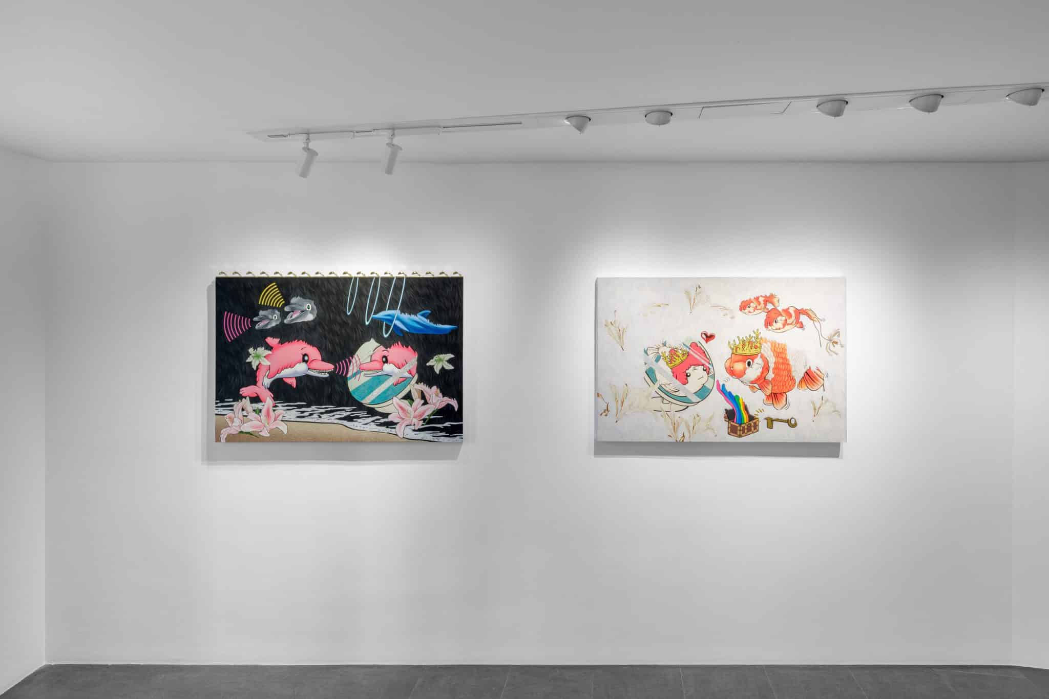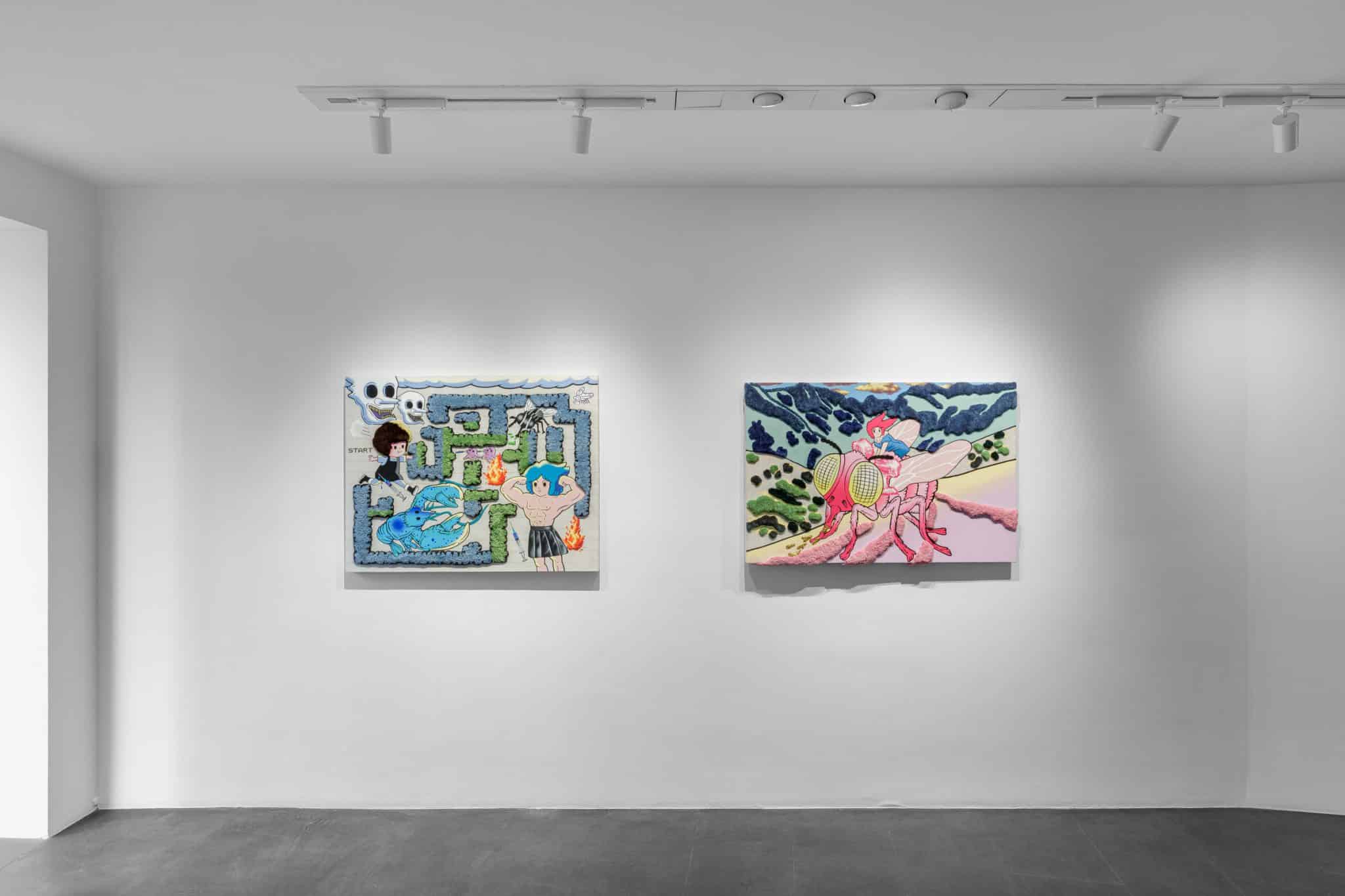 Née en 1979 à Bangkok, Yuree Kensaku est une artiste nippo-thaïlandaise dont l’imaginaire dynamique, inspiré des animes et mangas, explore les tensions entre esthétique ludique et critique sociale profonde. « Mon travail est un témoignage de mes pensées et de mes rencontres, un patchwork de langage visuel fragmenté. » écrit l’artiste. Ses histoires mêlent la réalité et la fiction, l’imagination et la mémoire. Ses œuvres font souvent appel à un langage visuel pop et coloré pour examiner des thèmes complexes, allant des questions environnementales et des troubles politiques aux interrogations philosophiques et aux aspects les plus sombres du comportement humain. Les obstacles sont un thème central. À l’image des cycles bouddhistes de vies passées et de renaissances, la réincarnation se vit comme un jeu vidéo. Chaque étape de vie se présente comme un nouveau défi : affronter un « boss », échouer, recommencer, réussir, puis passer au niveau suivant.